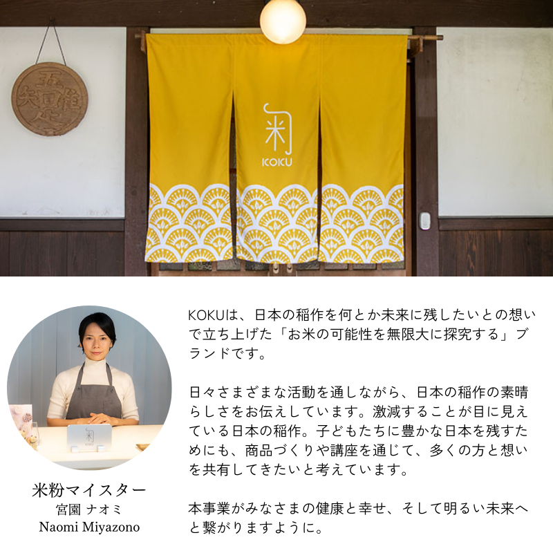 米粉専用品種「こなだもん」を、有機肥料100%で育成。蛍が飛び交う自然豊かな地で育ったお米を丁寧に「湿式・気流粉砕」したでんぷん損傷が極めて低い米粉。