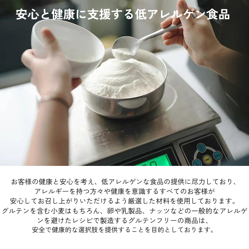 グルテンフリーの製菓や製パン、お好み焼きなど、ふんわり軽く仕上げたいお料理に最適です。