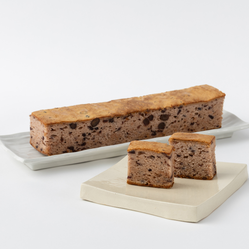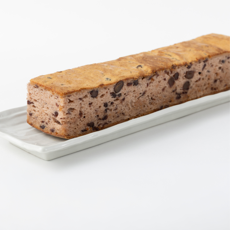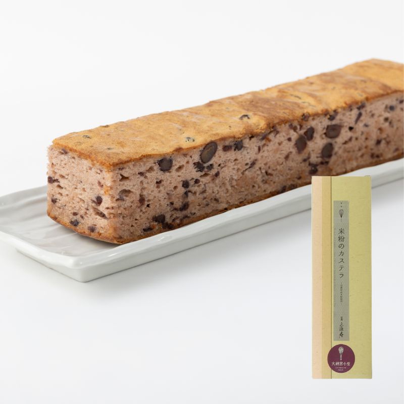 こだわりの国産米粉に大納言小豆を練り込むことで、米粉のカステラよりさらにしっとりとした食感に仕上がっています。