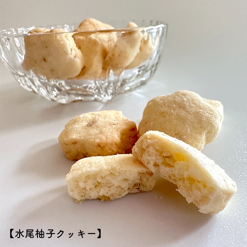「水尾」は愛宕山と保津川の間にある小さな柚子の里。ここで採れた新鮮な柚子の果汁を使い、爽やかな酸味と香りただようクッキーに仕上げました。