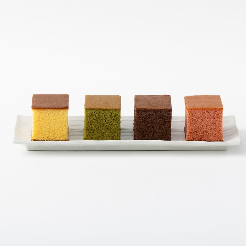| 内容量 | キューブカステラ 1個入り×4 (プレーン1個、抹茶1個、いちご1個、ショコラ1個) |