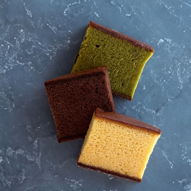 | 原材料 | 【カステラ】 ■和三盆プレーン:鶏卵(国産)、砂糖、小麦粉、水飴、白双糖、粗糖、米飴、和三盆糖、蜂蜜、(一部に卵・小麦を含む) ■ショコラ:鶏卵(国産)、砂糖、小麦粉、水飴、ココアパウダー、(一部に卵・小麦を含む) ■抹茶:鶏卵(国産)、砂糖、小麦粉、水飴、みりん、抹茶、(一部に卵・小麦を含む) 【バームクーヘン】 ■プレーン:鶏卵(国産)、砂糖、植物油脂、バター、小麦粉、コーンスターチ、生クリーム、オリゴ糖、洋酒、食塩/べーキングパウダー、乳化剤、香料(一部に乳成分・卵・小麦・大豆を含む) ■抹茶:鶏卵(国産)、砂糖、植物油脂、バター、小麦粉、コーンスターチ、生クリーム、オリゴ糖、牛乳、抹茶、食塩/べーキングパウダー、乳化剤、香料、着色料(紅花黄、クチナシ)、(一部に乳成分・卵・小麦・大豆を含む) |